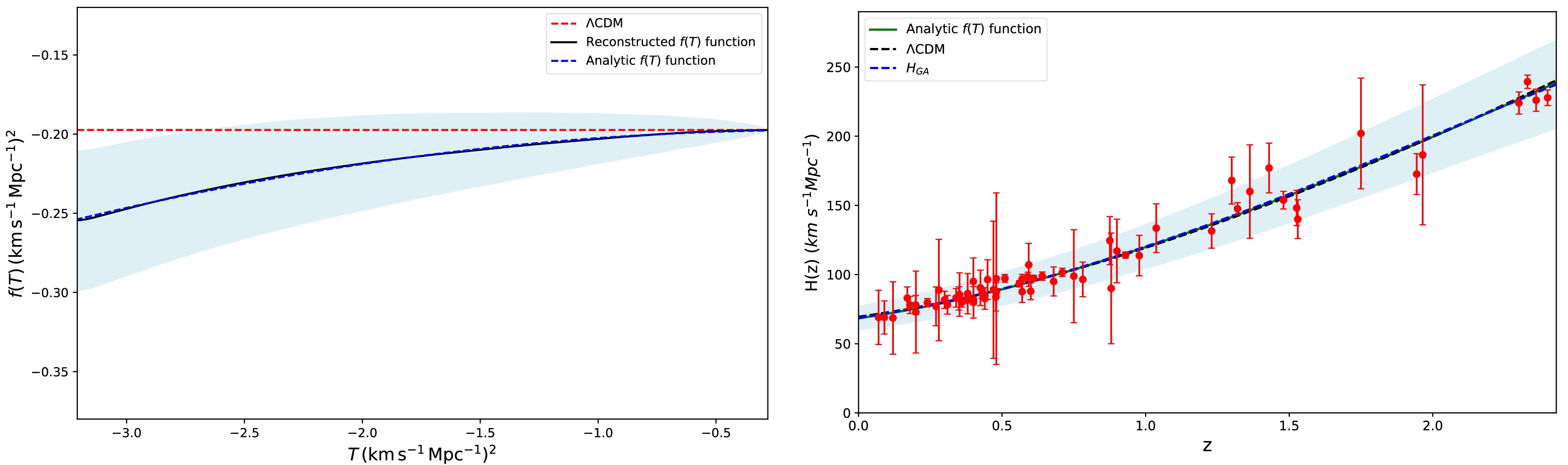 data derived from cosmic chronometers and the radial Baryon Acoustic Oscillation method, including the latest Dark Energy Spectroscopic Instrument (DESI) data, we reconstruct the Hubble rate, which is the basis parameter for reconstructing \begin{document}$f(T)$\end{document} ![]()
