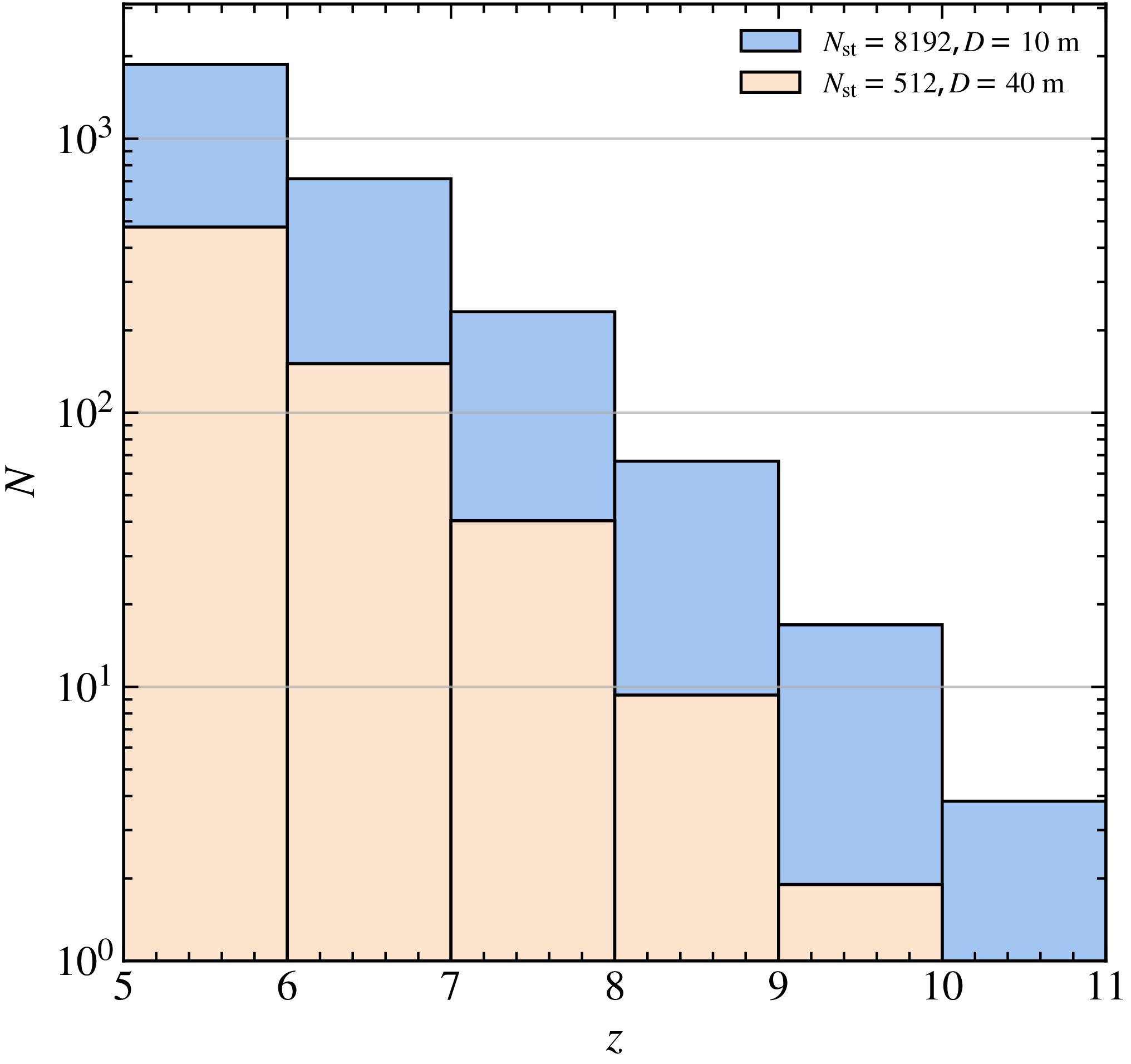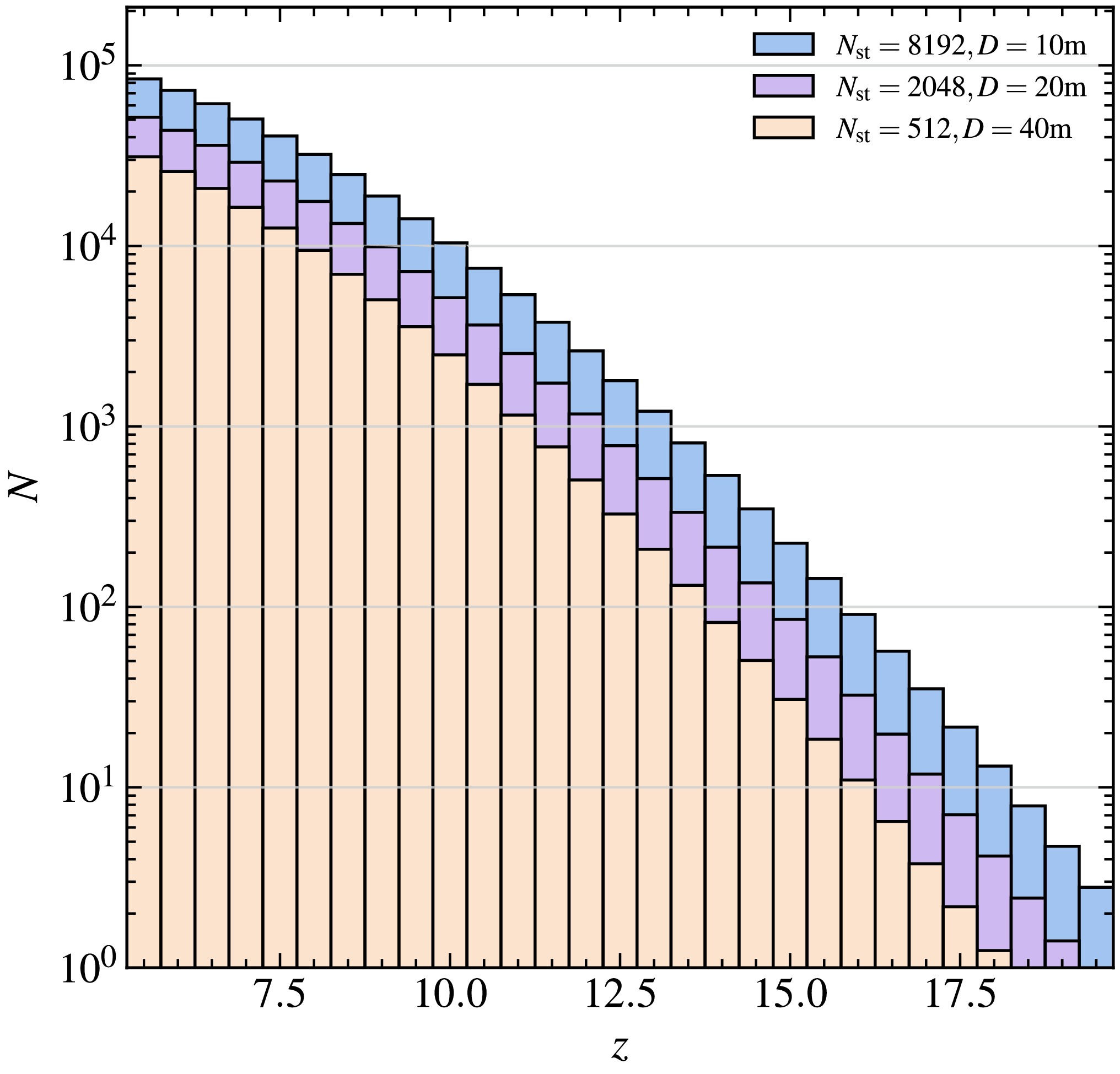 , while SKA-like arrays (\begin{document}$ N_{\mathrm{st}} = 512 $\end{document} ![]()