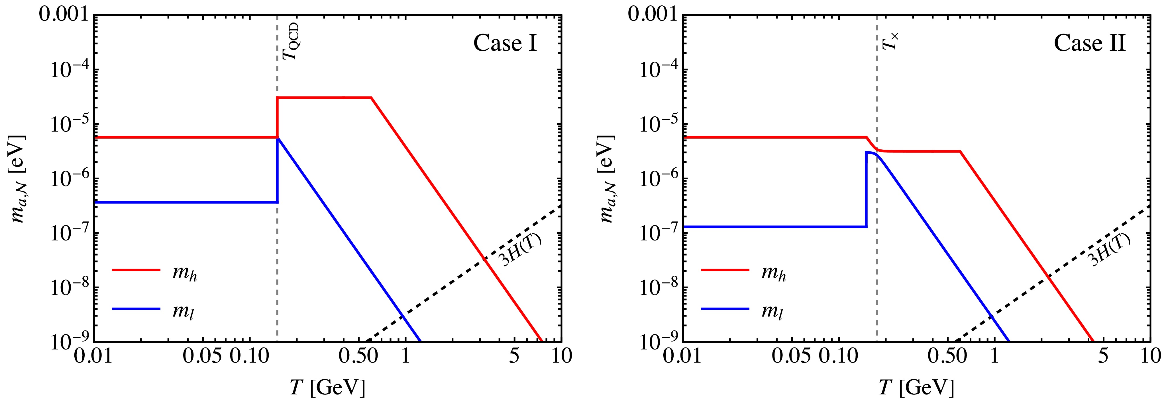 axion. The level crossing can occur at or slightly before the QCD phase transition critical temperature, depending on the ratio of the axion decay constants, \begin{document}$ \sim 1.69 $\end{document} ![]()
