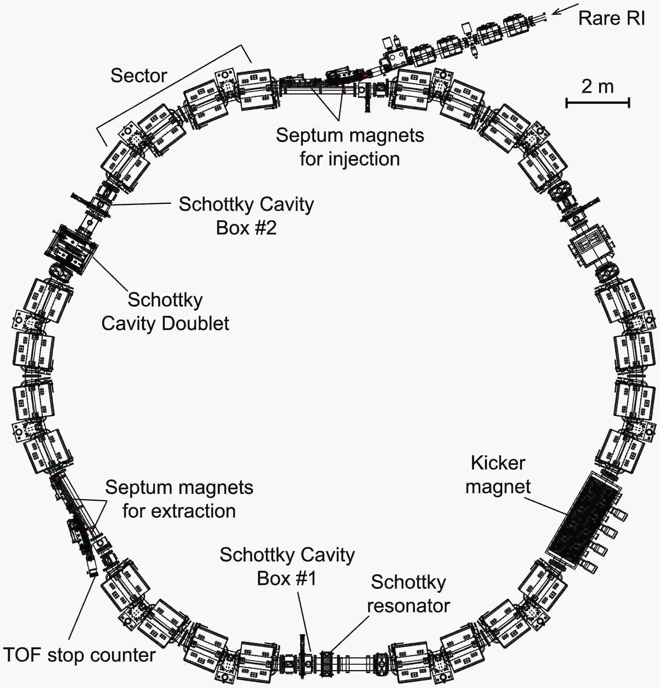 $ ^{124} $ Xe primary beam with 155 MeV/nucleon [119]. In addition, new vertical steering magnets installed in the injection beam line improved the transmission efficiency by seven times. Note that the new Schottky detector system, the transverse Schottky cavity doublet from GSI and compact box-type cavities from Saitama, is now ready for operation. See Fig. 1. -