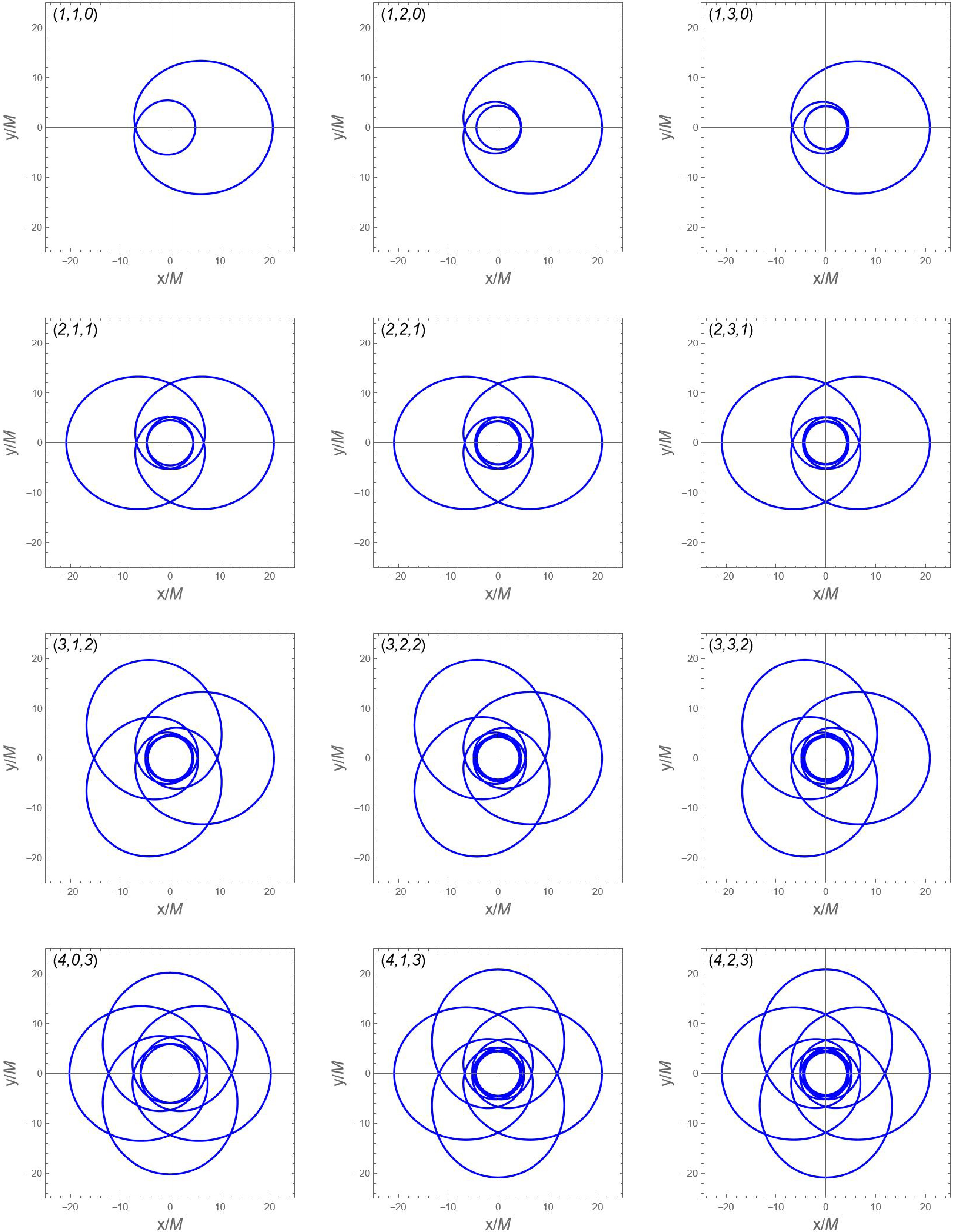 $ \omega_\varphi/\omega_r $ is irrational, it can be approximated by nearby rational values, enabling understanding of generic trajectories through neighboring periodic ones and their gravitational wave signatures [17]. Fundamental orbital frequencies are rationally related, with each orbit indexed by$ (z,w,v) $ and rational parameter$ q \equiv \frac{\omega_\varphi}{\omega_r} - 1 = w + \frac{v}{z}, $