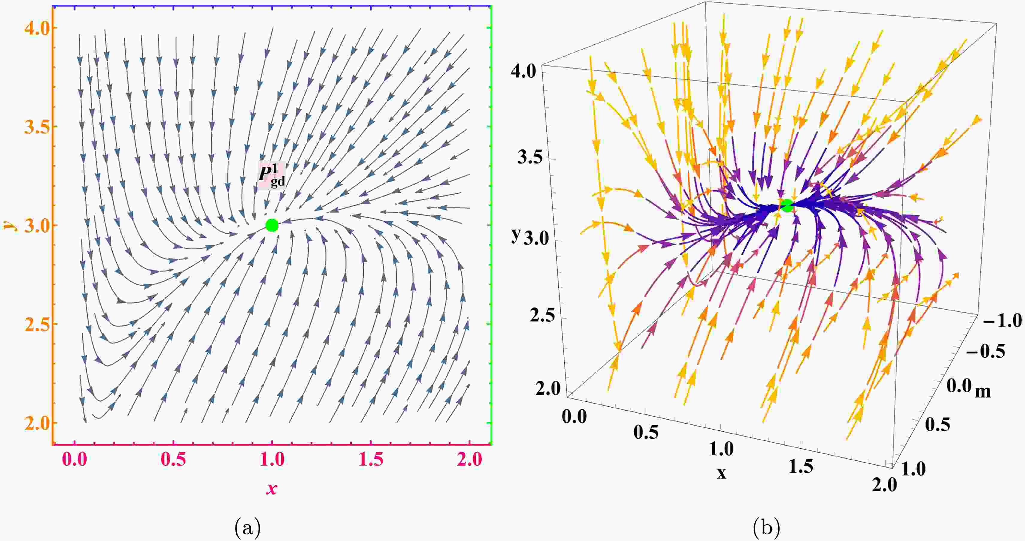Figure 1. (color online) Phase space flow of the model