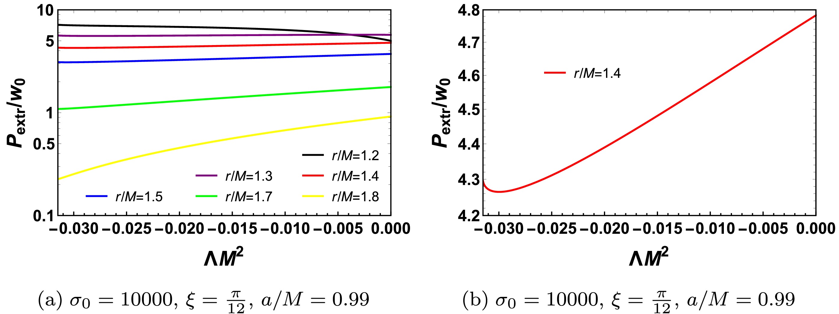 $ P_{{\rm{extr}}}^{{\rm{Kerr}}} $ , we only need to substitute$ \Lambda M^2=0 $ into (30).In Fig. 11, we fix the spin at