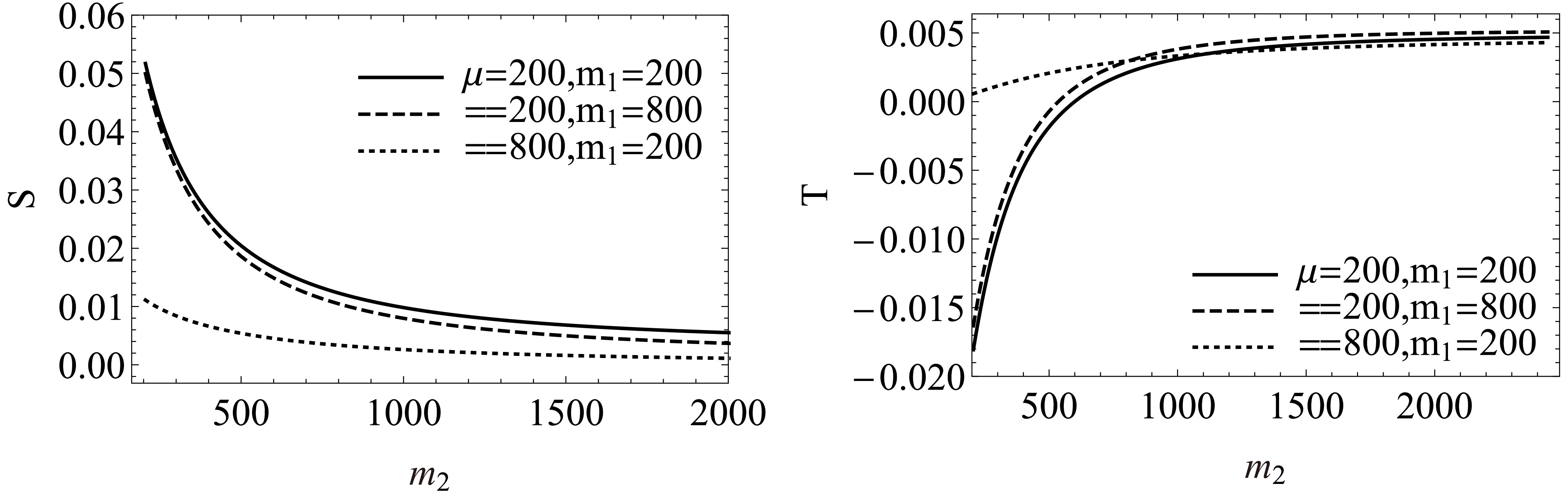 Figure 5. The dependence of the oblique parameters