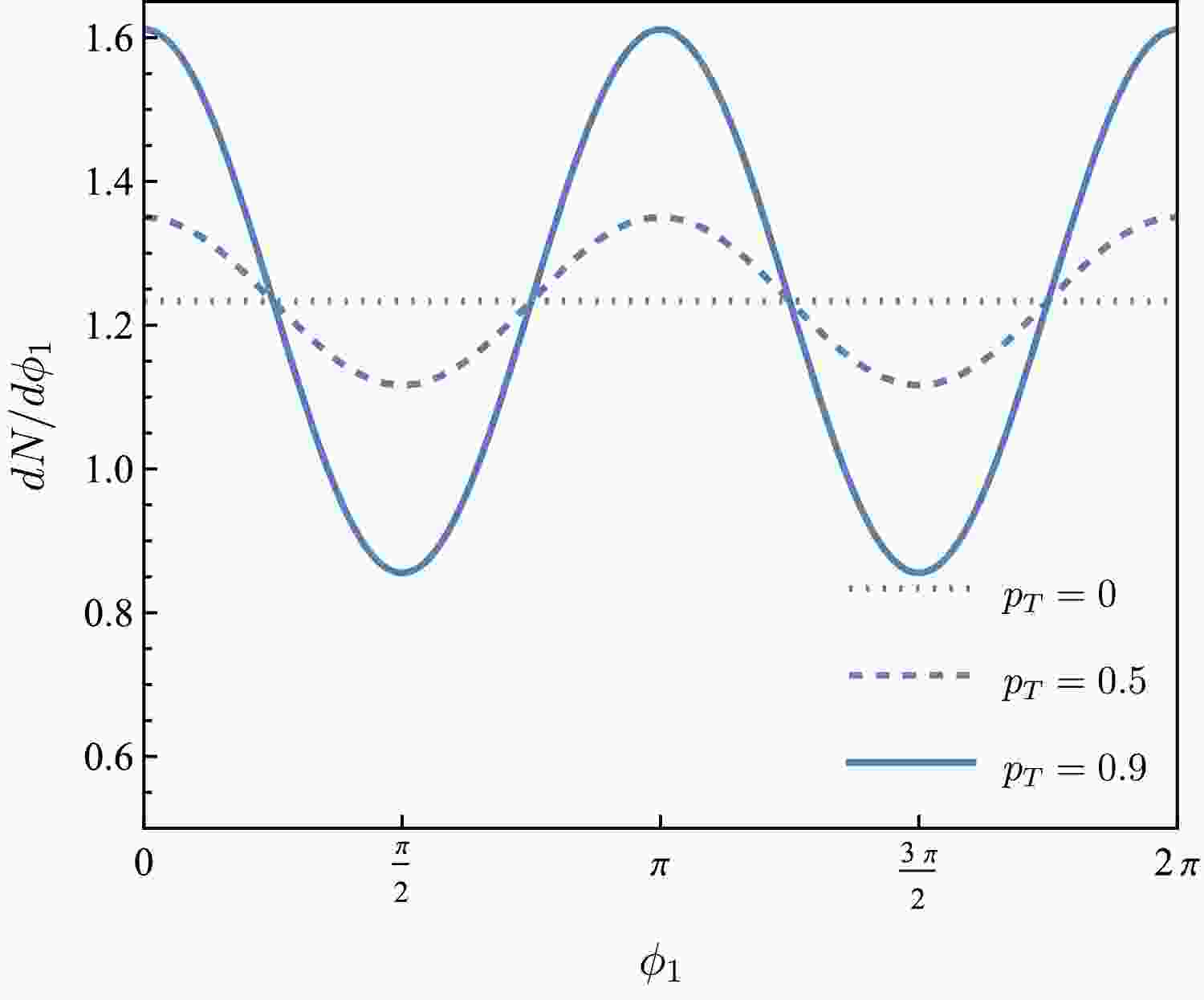 $ \phi_1 $ for$ p_T=0 $ ,$ 0.5 $ ,$ 0.9 $ (dotted, dashed and solid lines, respectively).