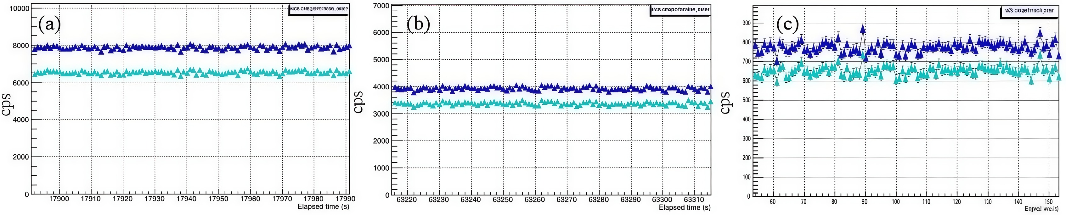 When measuring fission fragments from 252Cf, fission ionization chambers are commonly used as detectors. However, due to the experimental setup in which the 252Cf neutron source is placed at the center of the sample, this special configuration imposes stringent requirements on the physical dimensions of the ionization chamber. The fabrication timeline of such customized chambers could not meet the scheduling constraints of this study. Therefore, several compact detectors were evaluated as potential substitutes for the ionization chamber. Both diamond detectors and silicon carbide (SiC) detectors were found to be capable of detecting fission fragments. However, the diamond detector exhibited significant degradation under irradiation. As shown in Fig.5, its counting rate dropped from 8000 cps to 800 cps within just two days of operation, indicating unstable performance and rapid deterioration. Ultimately, the SiC detector was selected for fission fragment measurements due to its relatively stable performance under prolonged radiation exposure.