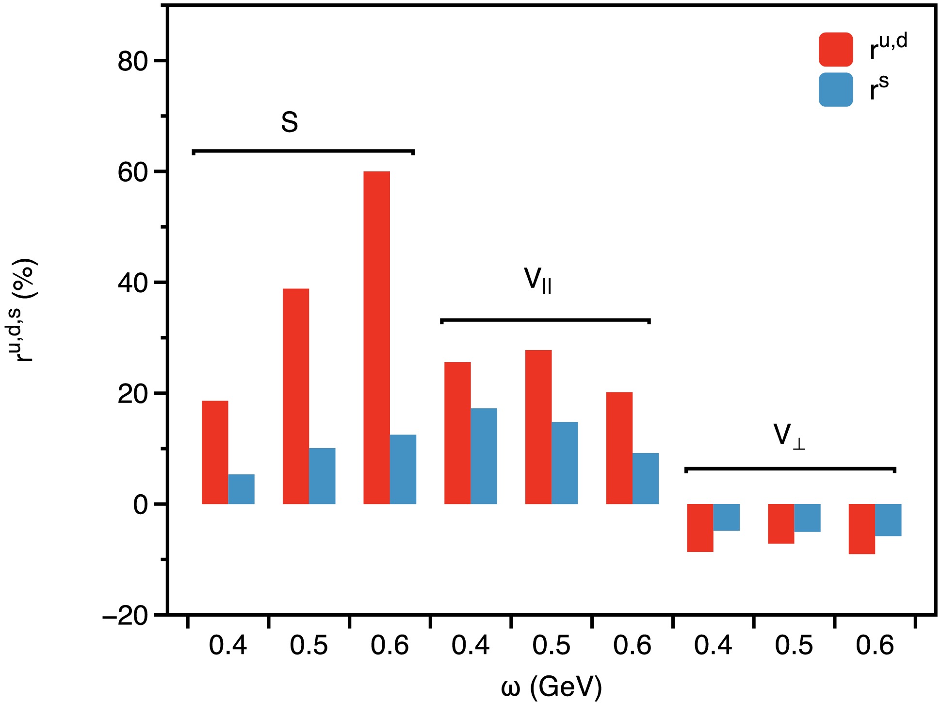 $ {\cal{W_A}} $ -$ {\cal{W_E}} $ from Eq. (41) into the momentum–space quark propagator in Eq. (37), we obtain$ S(p_\parallel,p_\perp)= S_1(p_\parallel,p_\perp)+S_2(p_\parallel,p_\perp)\,, $