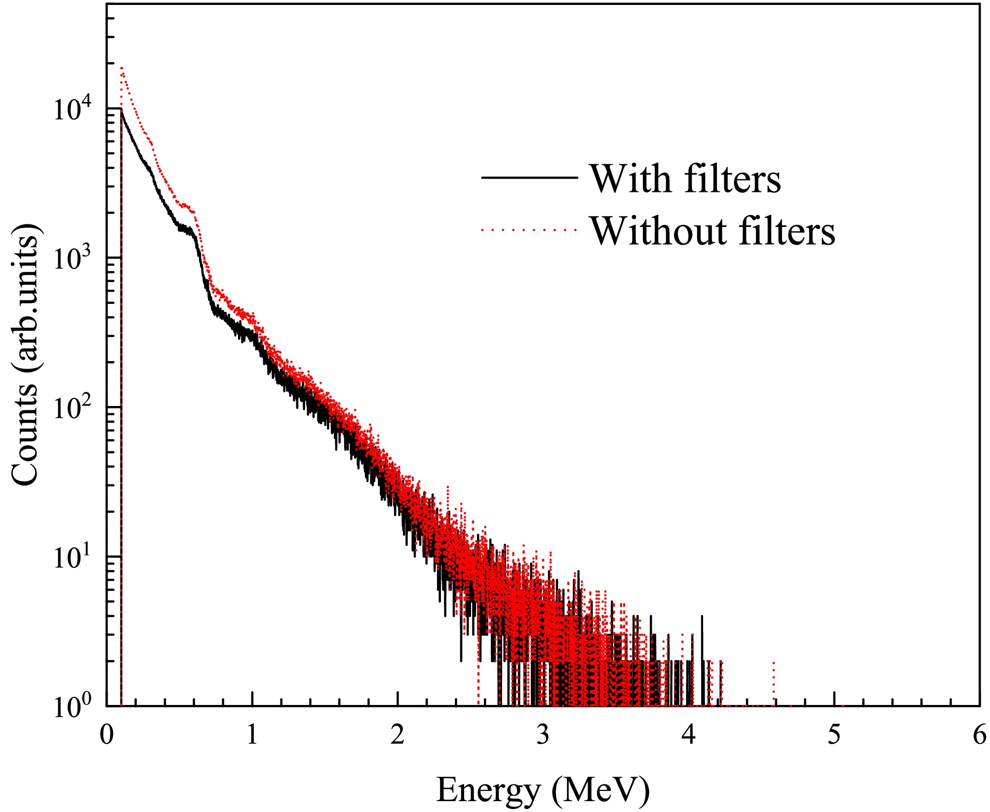 $ B_{\text{Li6out}} $ is the total background of the 6Li-GS detector without sample or filters.$ B_{0\text{Li6out}} $ is the flat background of the 6Li-GS detector.$ C_{\text{Li7out}} $ is the measured counts of the 7Li-GS, and$ B_{0\text{Li7out}} $ represents the flat background of the 7Li-GS detector.$ k_f $ is the normalization factor for in-beam γ ray, determined to be 0.42 from Eq. (7), similarly. As shown in Fig. 8, the top panel shows the background composition of the 6Li-GS detector with filters. The background curve passes through the obvious resonance peaks of 181Ta (4.28 eV) and 59Co (132 eV). And$ k_a $ is the attenuation factor of the in-beam γ-ray due to the filters. To determine the attenuation factor$ k_a $ , the in-beam γ-ray spectra with and without the filters were simulated using the Geant4 toolkit (version 10.7.4) [26–28]. As shown in Fig. 9, it shows the simulated γ-ray energy spectra measured by the 7Li-GS detector. Since the energy distribution of in-beam γ-ray remains invariant over different neutron flight time intervals [23],$ k_a $ is determined to be 0.91 [29]. The deviation between$ k_f / k_a $ and$ k_{\text{in}} $ is within 5%, indicating the accuracy of the simulation and validating the reliability of the background estimation based on Eq. (8). -