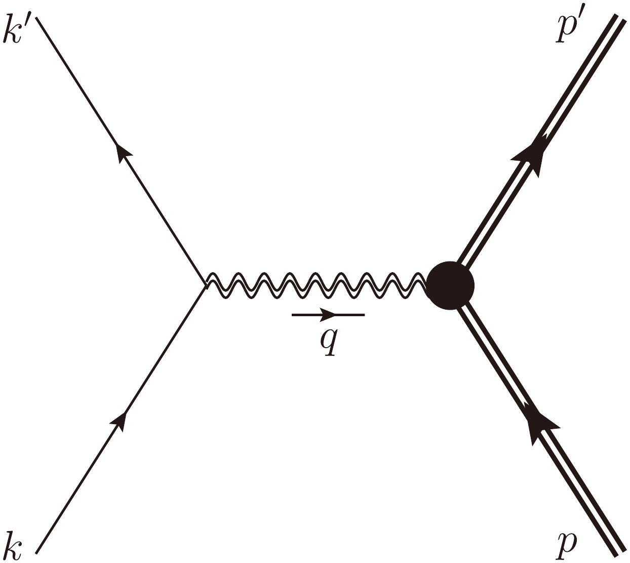 $ {\cal{P}}_{\mu\nu\rho\sigma}\equiv \eta_{\mu\rho}\eta_{\nu\sigma}+\eta_{\mu\sigma}\eta_{\nu\rho}-\eta_{\mu\nu}\eta_{\rho\sigma} $ corresponding to the harmonic gauge.$ q = k-k' $ represents the momentum carried by the virtual graviton.$ \lambda,\lambda' $ denote the polarization indices for the massive spinning target particle. For simplicity, we suppressed the spin indices of the projectile particle.We consider three different types of projectile particles, spin-
