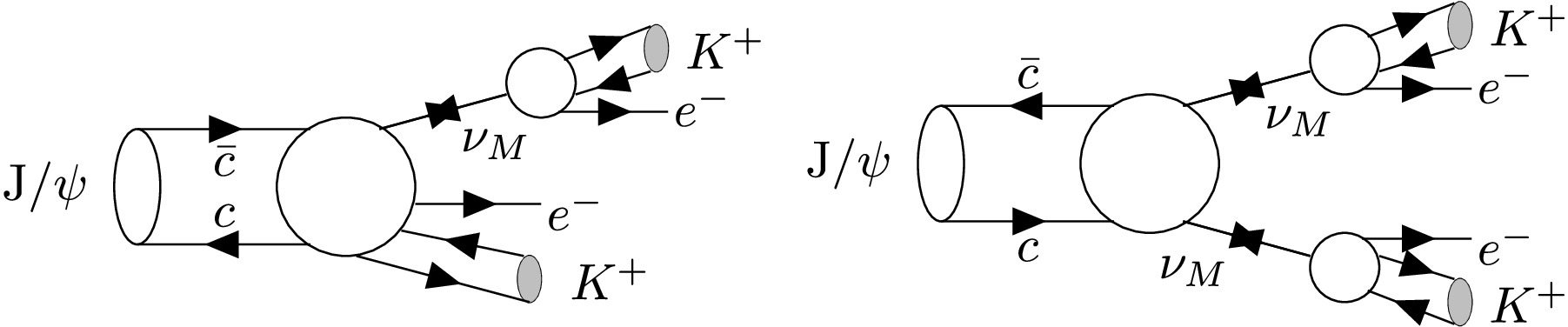 $ J/\psi\to\nu_M\nu_M\to(K^+e^-)(K^+e^-) $ (left), and for the decay process of$ J/\psi\to\nu_M K^+e^-\to (K^+e^-)K^+e^- $ (right).All the uncertainties are summarized in Table 1, and the total systematic uncertainty (
