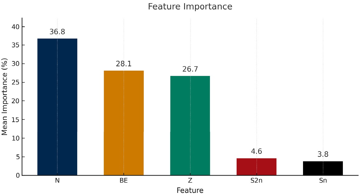 Understanding nuclear shape, behavior, and stability, as well as improving nuclear models, depends on the precise determination of ground-state nuclear charge radii. Existing experimental techniques are limited to extremely narrow regions of the nuclear chart; theoretical models, including relativistic Hartree-Bogoliubov (RHB) and Hartree-Fock-Bogoliubov (HFB), predict broad trends of nuclear properties but miss fine isotopic features such as odd-even staggering effects and shell-closure kinks. High computational time and cost are other obstacles to theoretical approaches. Although machine-learning algorithms have made significant progress in predicting charge radii, they are still hindered by a lack of balanced data and characteristics, primarily centered around\begin{document}$ A\ge40 $\end{document} and \begin{document}$ Z\ge20 $\end{document} . In the present study, we present the first application of CatBoost regression to compute nuclear charge radii. We integrated two experimental datasets with RHB-calculated point-coupling interaction (PC-X) theoretical features and extended our study range to \begin{document}$ A\ge17 $\end{document} , \begin{document}$ Z\ge8 $\end{document} . We found the best hyperparameters using Optuna’s Tree-structured Parzen Estimator (TPE) sampler with 10-fold cross-validation (CV), achieving a CV root-mean-square error (RMSE) of 0.0106 fm and hold-out RMSE of 0.0102 fm, with only three features, i.e., neutron number (N), proton number (Z), and RHB theoretical binding energy (BE), outperforming nine other ML models: random forest (RF), quantile RF (QRF), Cubist, Gaussian process regression with polynomial kernel (GPPK), multivariate adaptive regression splines (MARS), SVR, ANN, convolutional neural network (CNN), and Brussels-Skyrme-on-a-grid 3 (BSkG3). SHapley Additive exPlanations (SHAP) analysis confirms the highest global influence of BE in the model's predictions, followed by proton number and neutron number. The proposed model can accurately reproduce the \begin{document}$ N=50 $\end{document} kink and odd-even staggering effects in krypton and strontium chains. These results establish CatBoost as a robust and notably promising model for charge-radius prediction and beyond, with the potential to impact r-process modeling and future theoretical development.