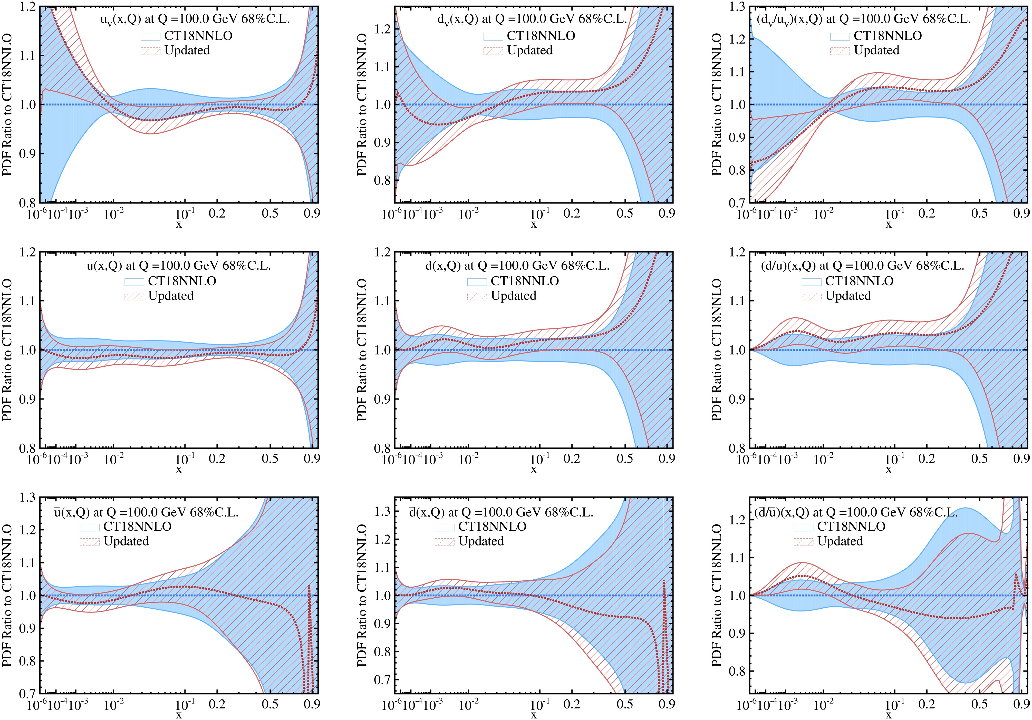 Recently, a series of new measurements with both the neutral and charge current Drell–Yan processes have been performed at hadron colliders, revealing deviations from the predictions of the current parton distribution functions (PDFs). In this article, the impact of these new measurements is studied by using their results to update the PDFs. Although these new measurements correspond to different boson propagators and colliding energies, they are found to have a similar impact to the light quark parton distributions with a momentum fraction x of approximately 0.1. The deviations are consistent with each other and favor a larger valence