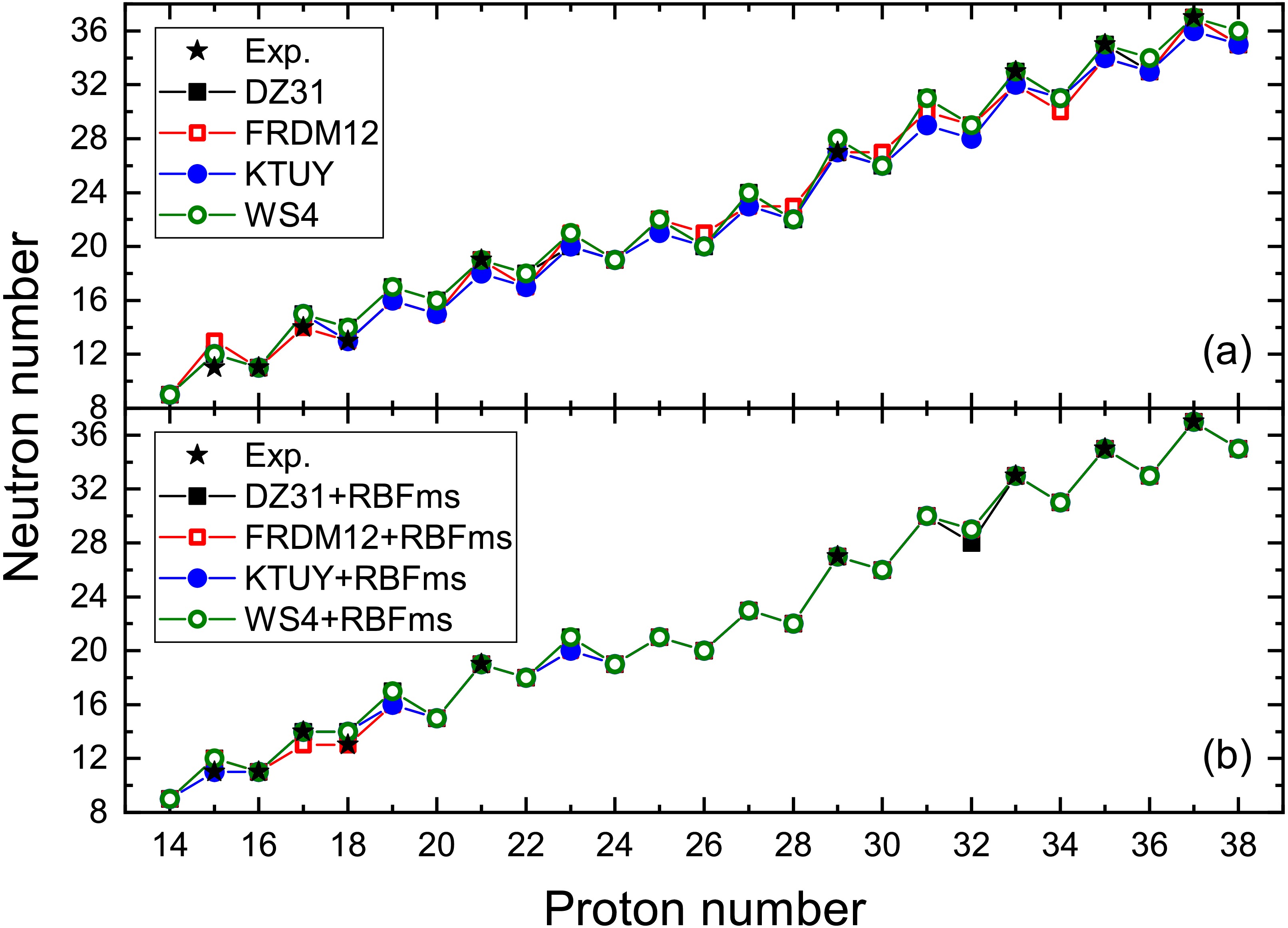 Mirror symmetry is combined with the radial basis function (RBF) approach to improve the prediction accuracy of proton separation energy. Compared with the traditional RBF approach, the RBF combined with mirror symmetry (RBFms) mainly involves training the residual of the one/two-proton separation energy deviation of the nucleus and the one/two-neutron separation energy deviation of its mirror nucleus. The KTUY model combined with the RBFms approach yields a root-mean-square (rms) deviation of 0.113 MeV for one-proton separation energies of 143 nuclei, while the DZ31 model combined with the RBFms approach achieves an rms deviation of 0.089 MeV for two-proton separation energies of 115 nuclei. In the region where the proton number\begin{document}$ Z=14-38 $\end{document} , the proton drip line and two-proton decay candidate nucleus are predicted by the DZ31, FRDM12, KTUY, and WS4 models combined with RBFms.