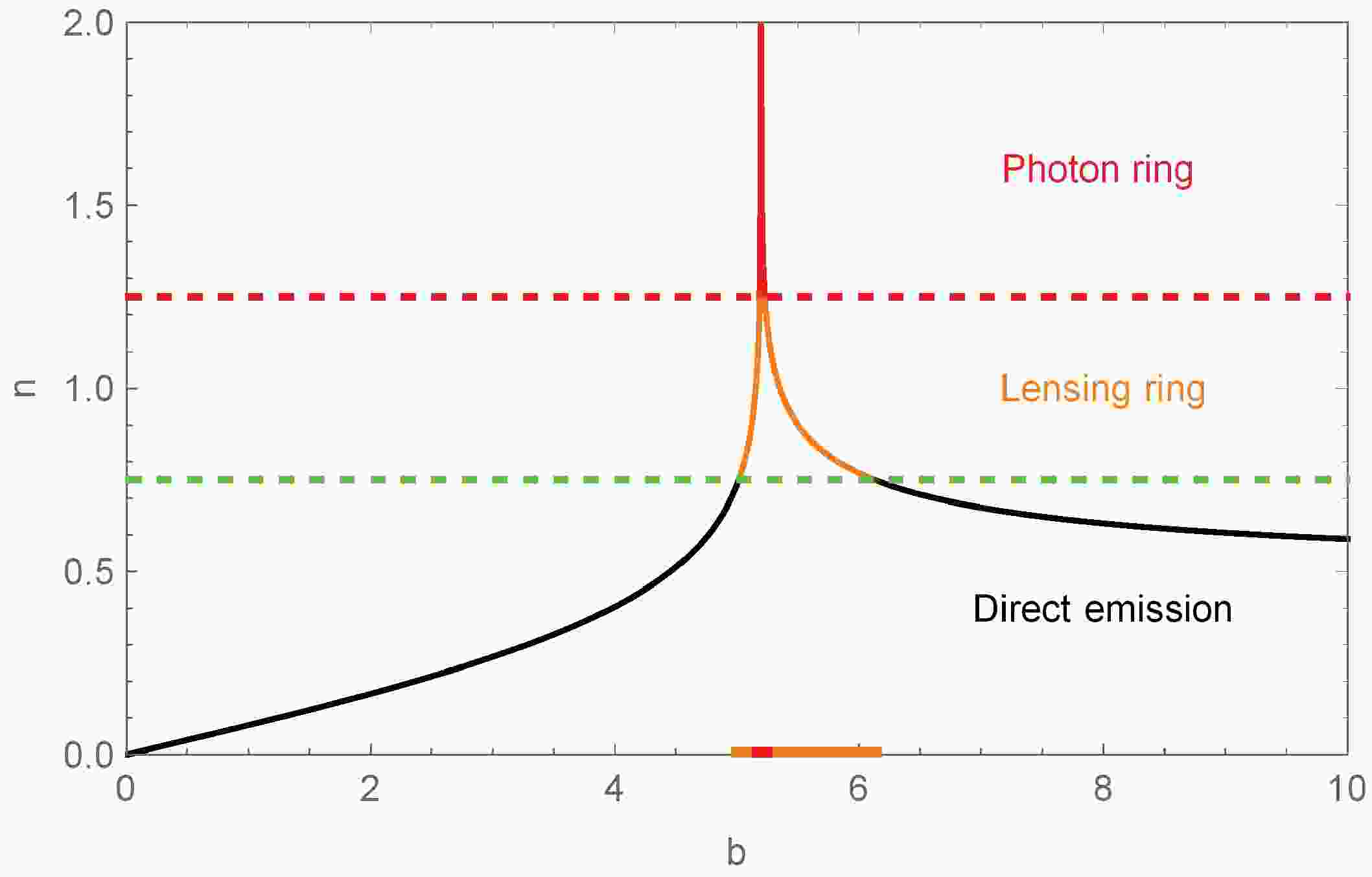 $ 1/4<n<3/4 $ $ \Leftrightarrow $ $ b\in(0,b_2^-)\cup (b_2^+,\infty) $ ;• Lensing ring: