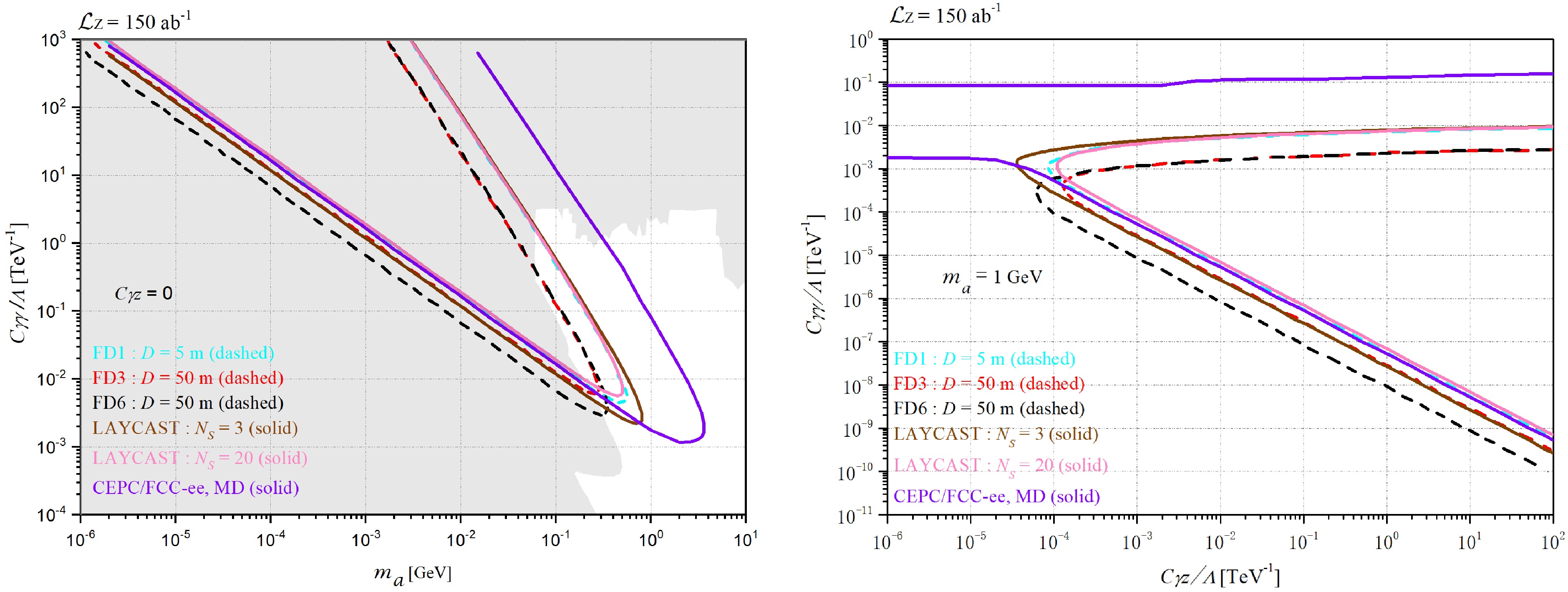Besides the aforementioned detectors, several far detectors are proposed to search for LLP. Compared to the main detector near the collision point, far detectors can significantly enhance the ability to detect LLP, particularly when the decay length of the LLP reaches on the order of hundreds of meters. Examples of such detector proposals, including FADEPC and LAYCAST, are discussed in detail in Section VII. Far detectors are expected to work synergistically with the main detector, greatly extending the CEPC's capability for exploring new physics.
