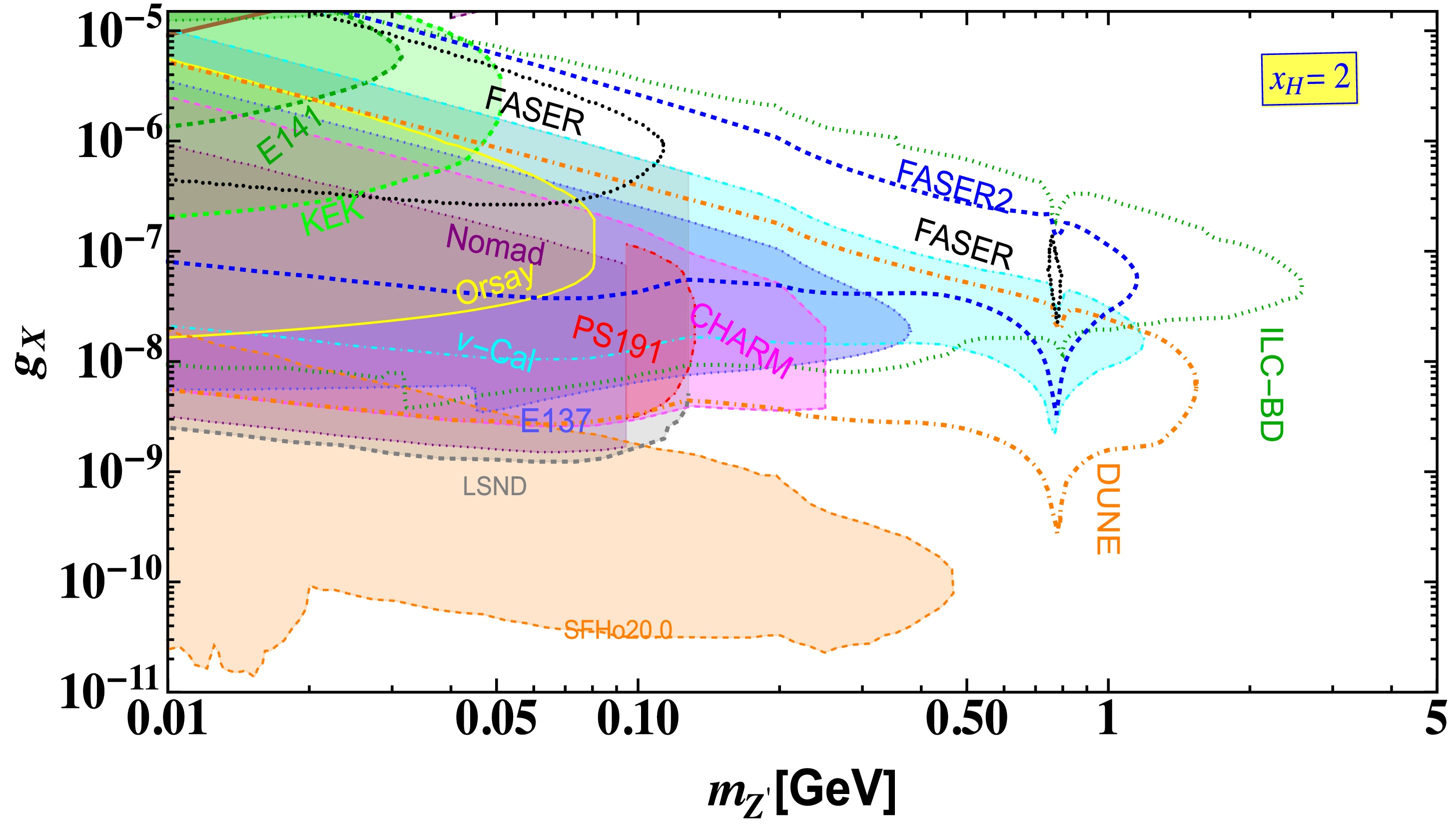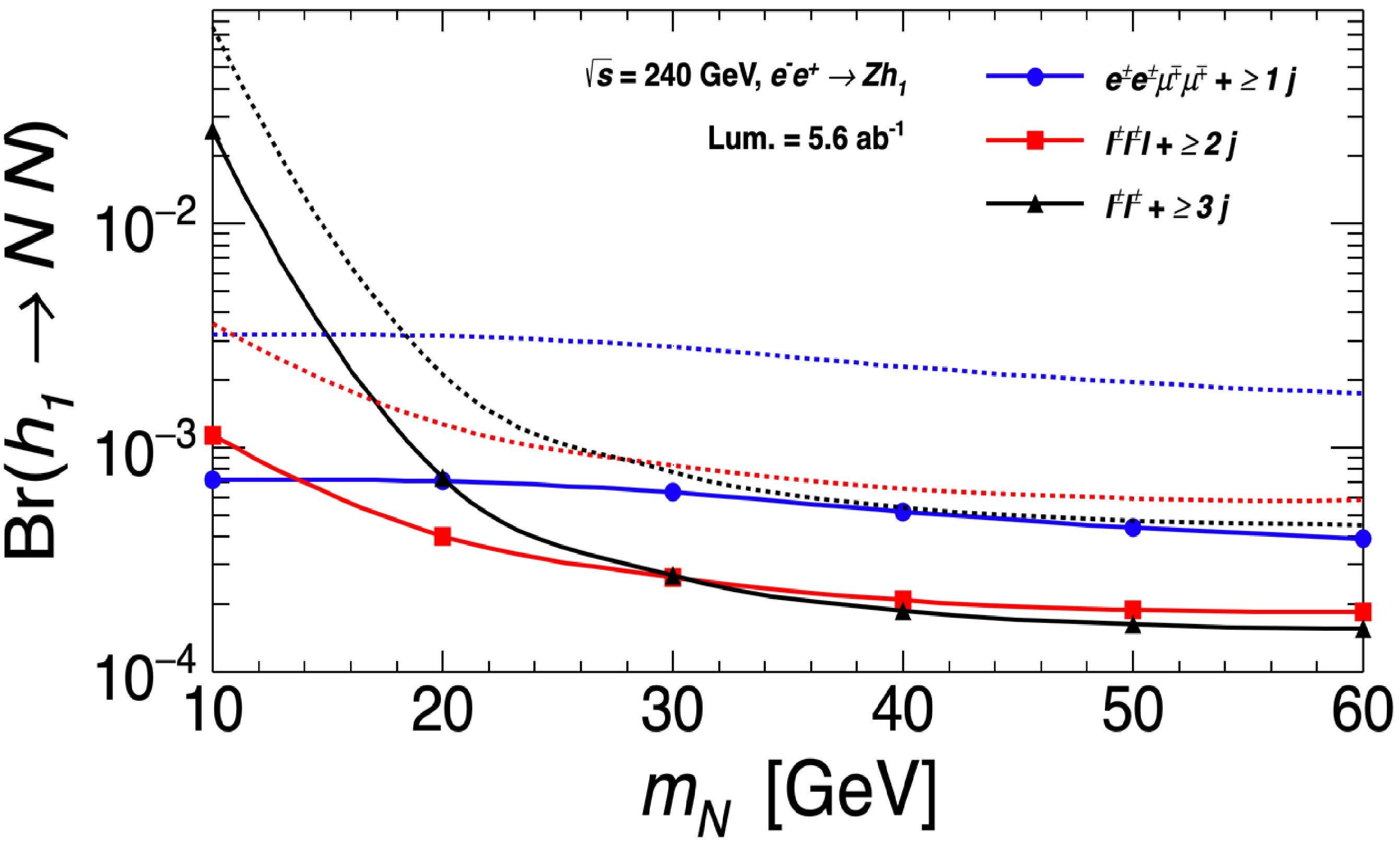 $ 20\; \text{ab}^{-1} $ , the CEPC will achieve unprecedented sensitivity to exotic Higgs decays, constraining branching ratios to: (i)$ \sim 0.1 $ % for fully invisible decays, (ii)$ 0.03 $ %–$ 0.2 $ % for semi-invisible decays, and (iii)$ 0.03 $ %–$ 0.6 $ % for decays to dark sector particles that subsequently decay to SM final states. Fig. 101 presents a comprehensive sensitivity comparison between CEPC and HL-LHC for: semi-invisible decays$ H \to jj+{\not{E}} $ , dark sector decays$ H \to XX $ with$ X \to b\bar{b} $ or$ X \to \tau^+\tau^- $ . The cleaner lepton collider environment at CEPC provides 2–3 orders of magnitude improvement in fully visible channels, while its superior missing energy reconstruction enables 2–4 orders of magnitude better sensitivity for fully invisible and semi-invisible channels compared to HL-LHC.