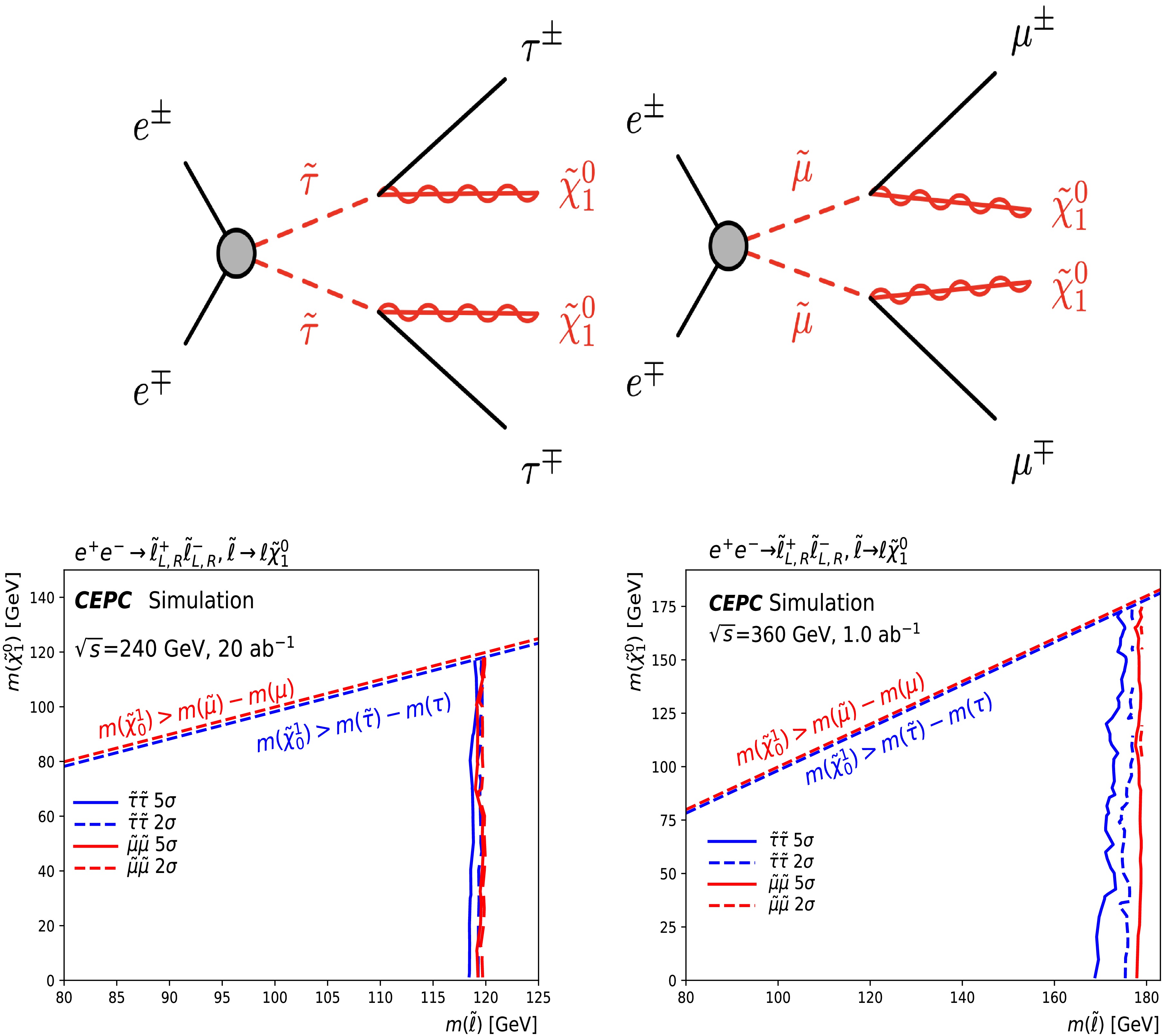 $ |\cos(\beta-\alpha)| $ to less than 0.008, and the typical mass splitting of heavy Higgs to less than about 200 GeV. For small$ \tan\beta $ , the SUSY scale can be raised to above 1 TeV using the precision data of Higgs and electroweak measurements.In summary, CEPC could determine the Higgs boson properties and explore Beyond the Standard Model physics with unprecedented sensitivity. As a future Higgs factory, it will produce millions of Higgs bosons in a clean experimental environment, enabling detailed studies of Higgs properties that could reveal deviations from Standard Model predictions. These deviations may point to new physics, such as hidden couplings to dark matter, mixing with dark sector particles, or mechanisms explaining neutrino masses. The CEPC will also investigate the Higgs potential, which is crucial for understanding electroweak symmetry breaking and the possibility of a first-order phase transition in the early universe, a key requirement for explaining matter-antimatter asymmetry. In addition to Higgs studies, CEPC will excel in probing light dark matter and dark sector particles, which are challenging to detect at hadron colliders like the LHC. Its high-precision measurements of Higgs and Z bosons could uncover rare decays or signals of long-lived particles, offering insights into theories like supersymmetry or hidden dark forces. Its ability to reconstruct soft particles and missing energy makes it uniquely sensitive to compressed spectra and weakly interacting scenarios.
