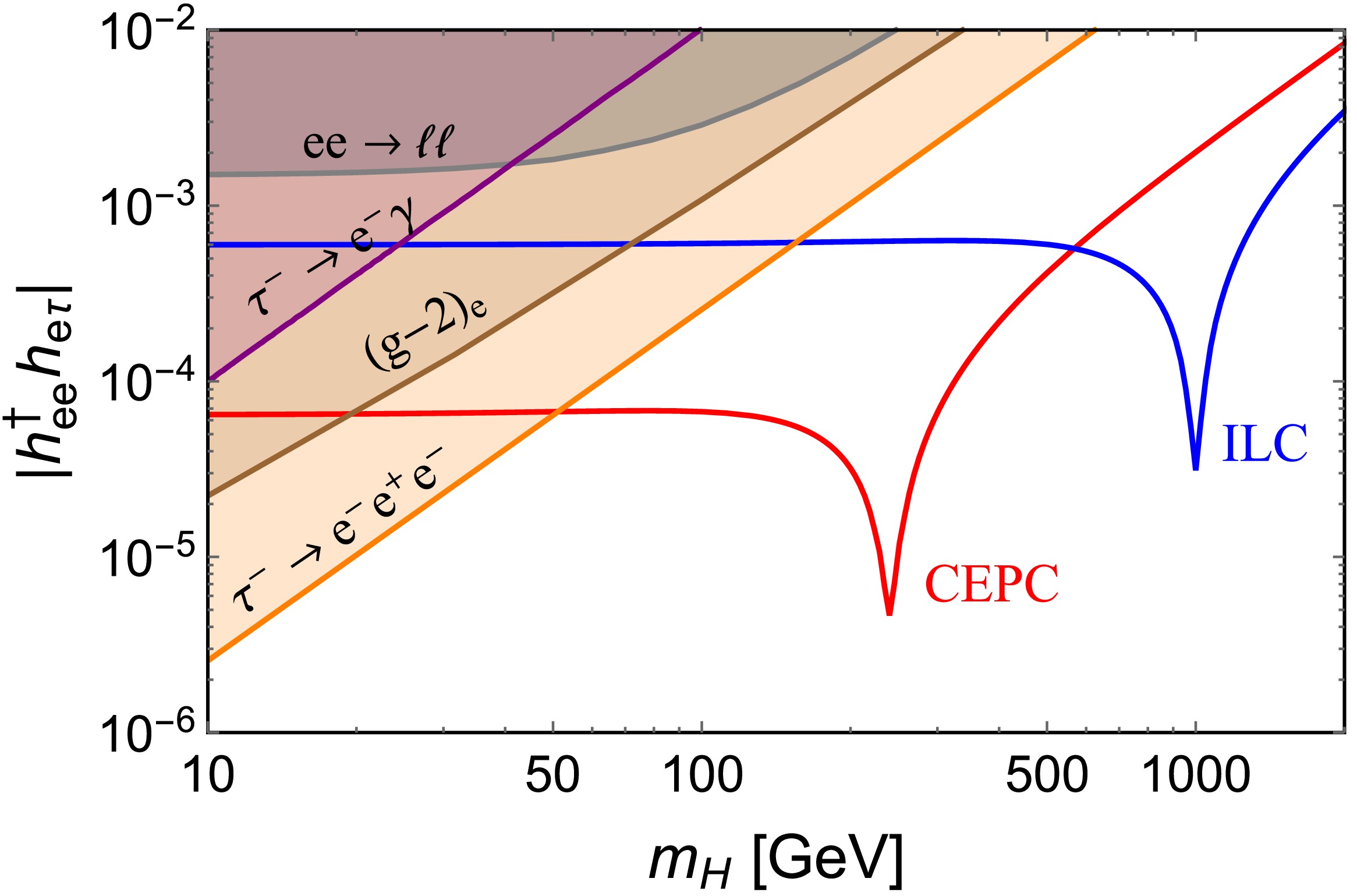 Figure 102. (color online) The typical energy scale of New Physics that could be probed at the CEPC. The left column corresponds to a specialized New Physics Model of SUSY, and exotic New Physics signal searches, including Axion-like particles, and scalar particles in seesaw Models. The middle and right columns correspond to New Physics search via EFT.