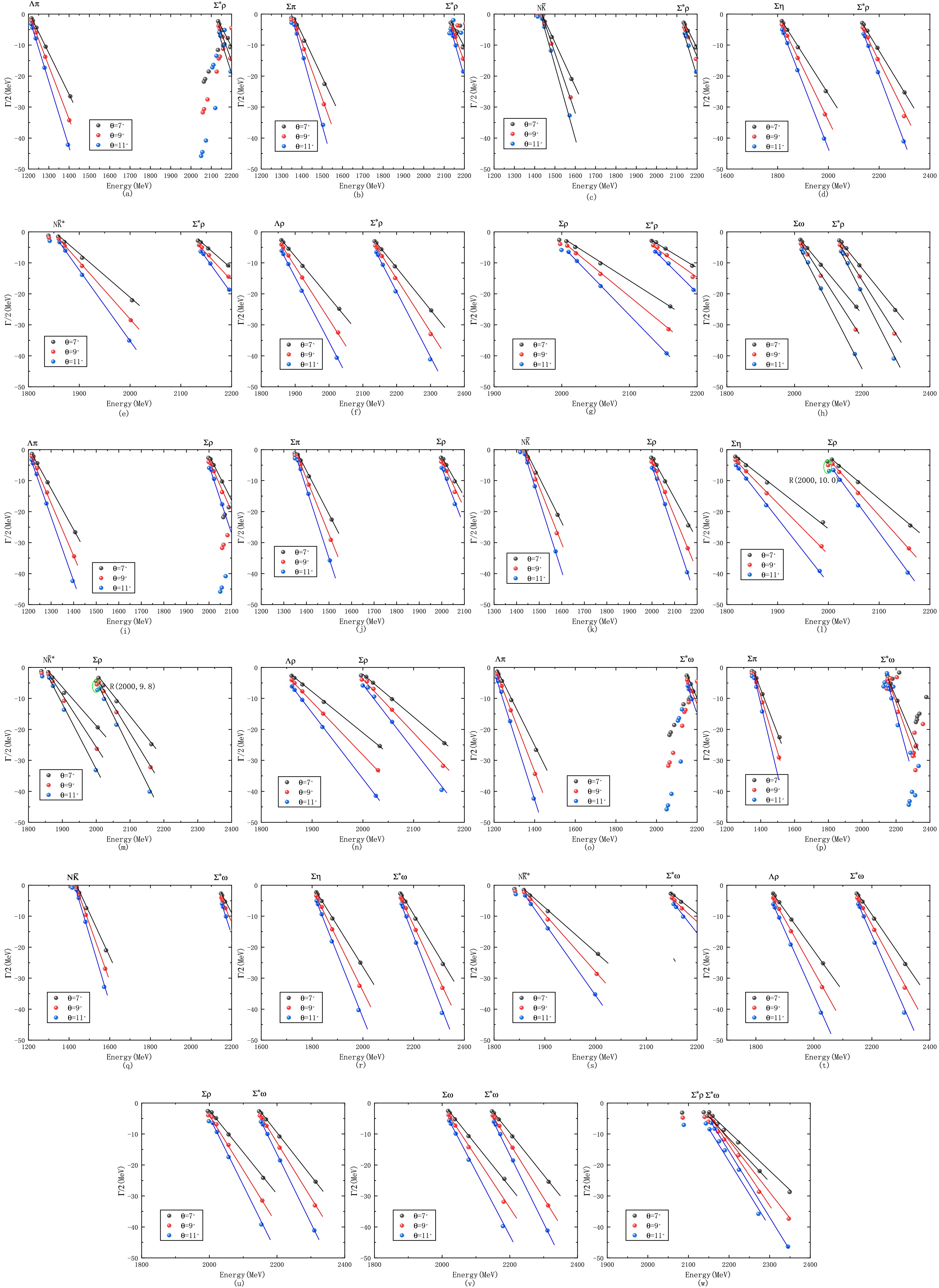 $ \Sigma(1/2^{-}) $ five-quark system. (a)$ \Sigma^{*} \rho \rightarrow \Lambda \pi $ .(b)$ \Sigma^{*} \rho \rightarrow \Sigma \pi $ . (c)$ \Sigma^{*} \rho \rightarrow N\bar{K} $ . (d)$ \Sigma^{*} \rho \rightarrow \Sigma \eta $ . (e)$ \Sigma^{*} \rho \rightarrow N\bar{K}^{*} $ . (f)$ \Sigma^{*} \rho \rightarrow \Lambda \rho $ . (g)$ \Sigma^{*} \rho \rightarrow \Sigma \rho $ . (h)$ \Sigma^{*} \rho \rightarrow \Sigma \omega $ . (i)$ \Sigma \rho \rightarrow \Lambda \pi $ . (j)$ \Sigma \rho \rightarrow \Sigma \pi $ . (k)$ \Sigma \rho \rightarrow N\bar{K} $ . (l)$ \Sigma \rho \rightarrow \Sigma \eta $ . (m)$ \Sigma \rho \rightarrow N\bar{K}^{*} $ . (n)$ \Sigma \rho \rightarrow \Lambda \rho $ . (o)$ \Sigma^{*} \omega \rightarrow \Lambda \pi $ . (p)$ \Sigma^{*} \omega \rightarrow \Sigma \pi $ . (q)$ \Sigma^{*} \omega \rightarrow N\bar{K} $ . (r)$ \Sigma^{*} \omega \rightarrow \Sigma \eta $ . (s)$ \Sigma^{*} \omega \rightarrow N\bar{K}^{*} $ . (t)$ \Sigma^{*} \omega \rightarrow \Lambda \rho $ . (u)$ \Sigma^{*} \omega \rightarrow \Sigma \rho $ . (v)$ \Sigma^{*} \omega \rightarrow \Sigma \omega $ . (w)$ \Sigma^{*} \omega \rightarrow \Sigma^{*} \rho $ . -