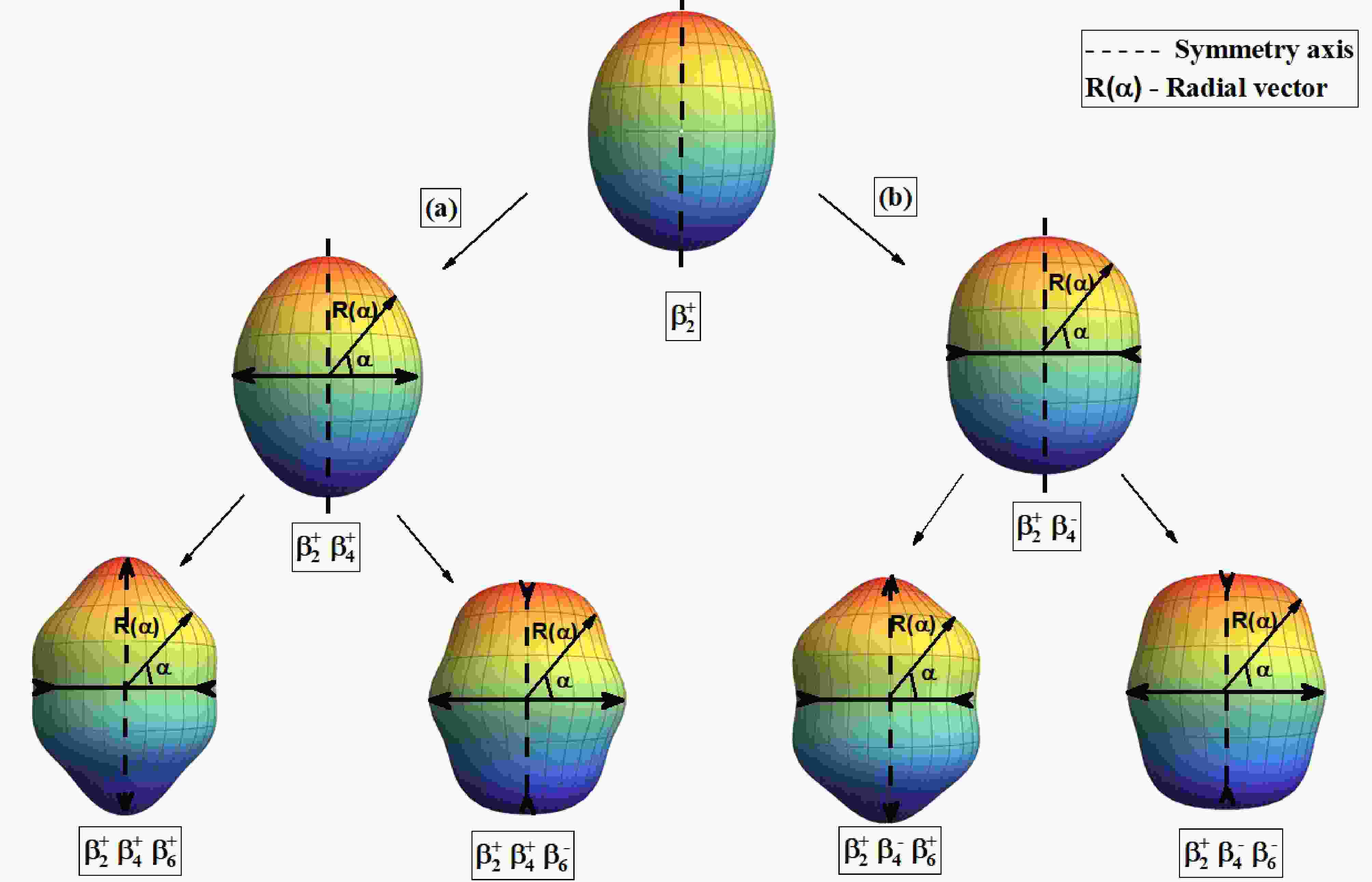 Typically, the nuclear shape deviates from perfect spherical symmetry. These deviations arise from dipole moments linked to the neutron-to-proton ratio within the nuclei, which leads to a deformed nuclear shape. These nuclear deformations (
