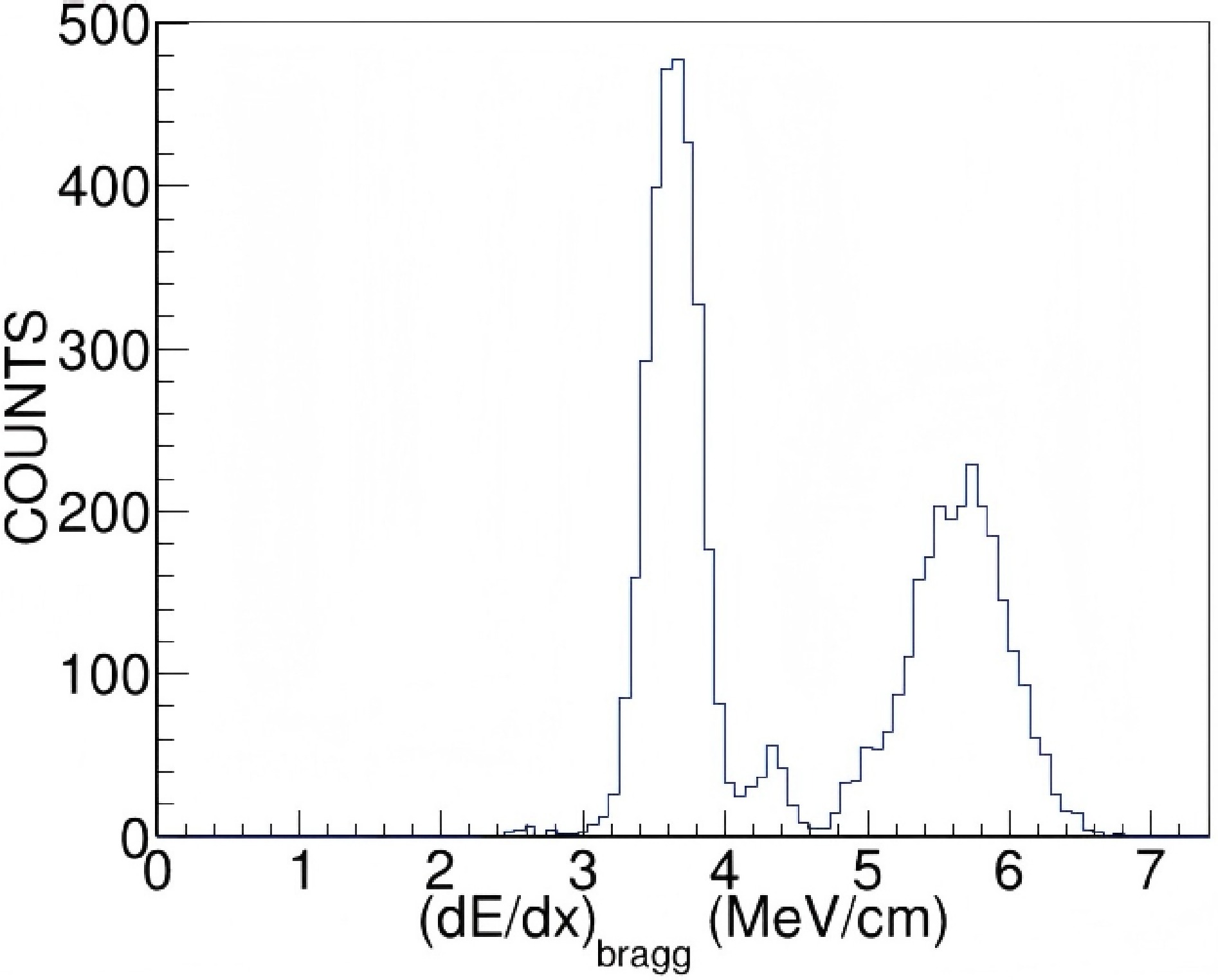 Although the pad-level threshold of 120 keV rendered our detector insensitive to protons and most α particles, a fraction of α-evaporation events was still detected. For events containing two reconstructed tracks, we first sorted the tracks by their energy (