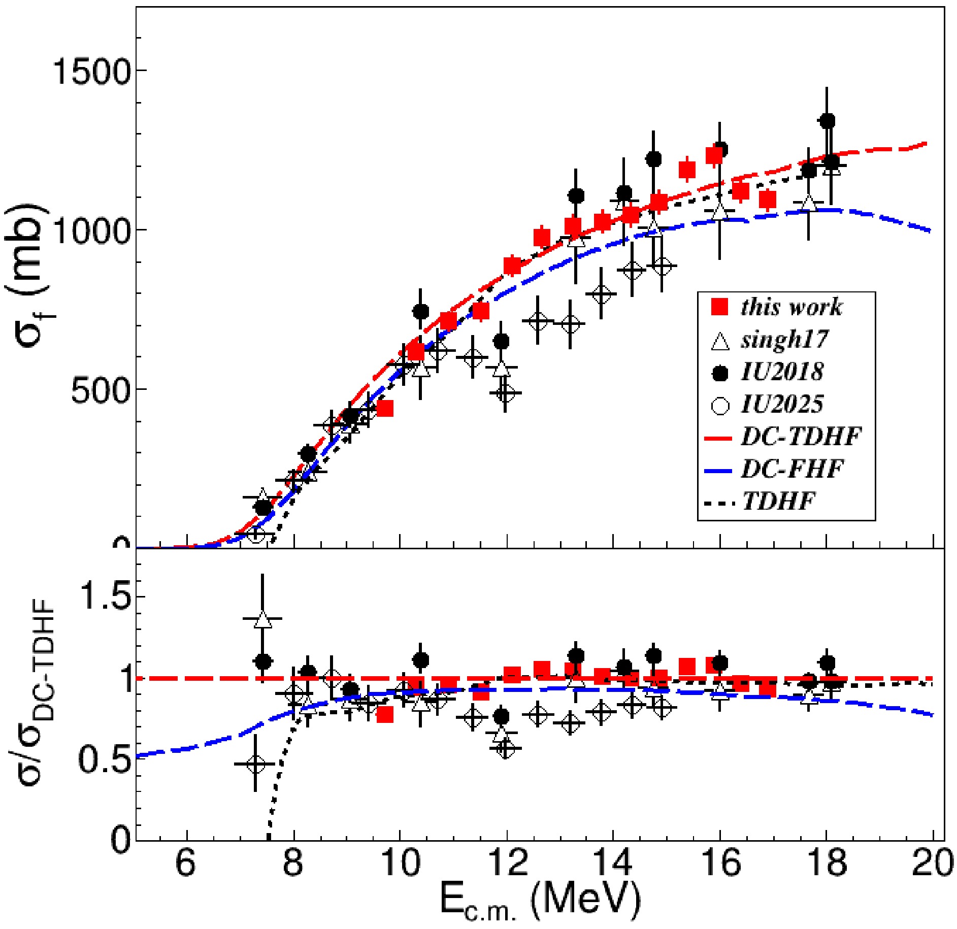 Figure 13. (color online) (Upper) Fusion cross sections for the
